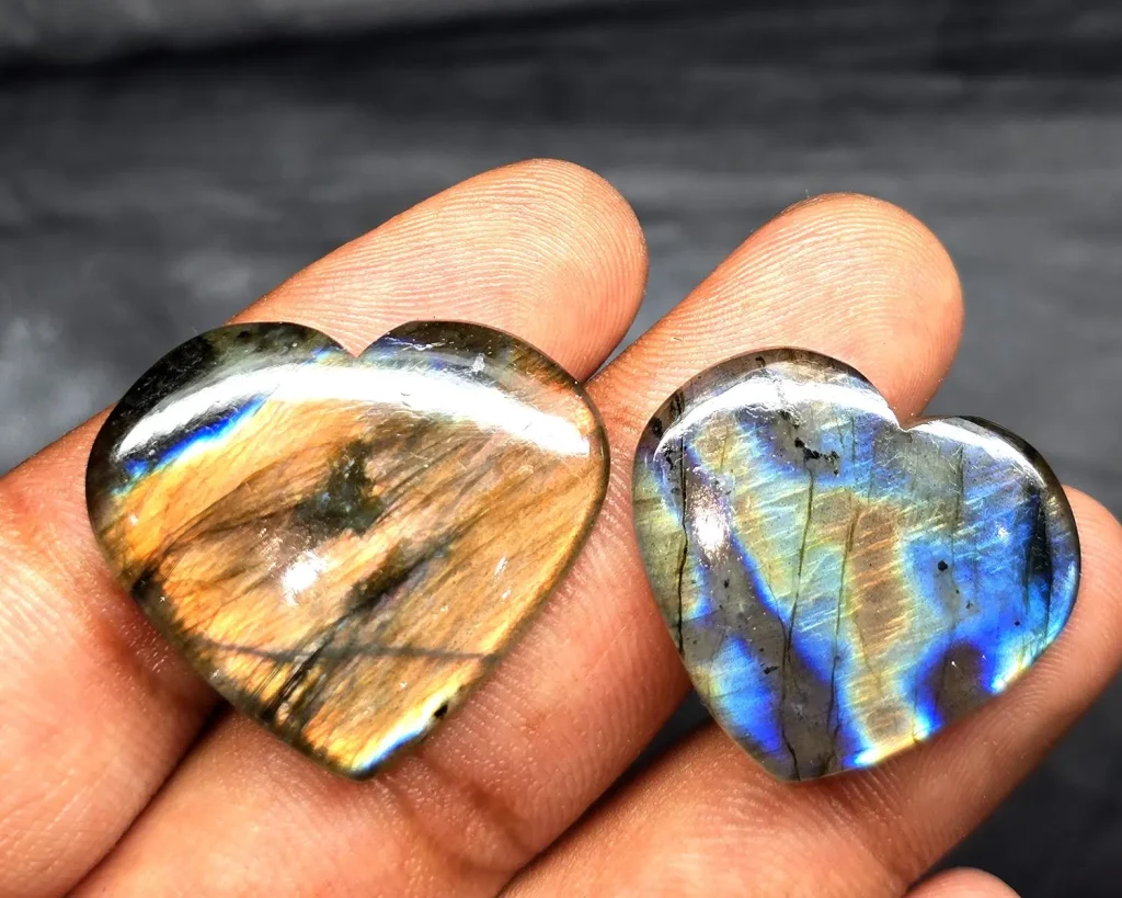Der Labradorit schützt die Aura, stärkt die Intuition und fördert innere Ruhe und emotionale Balance.